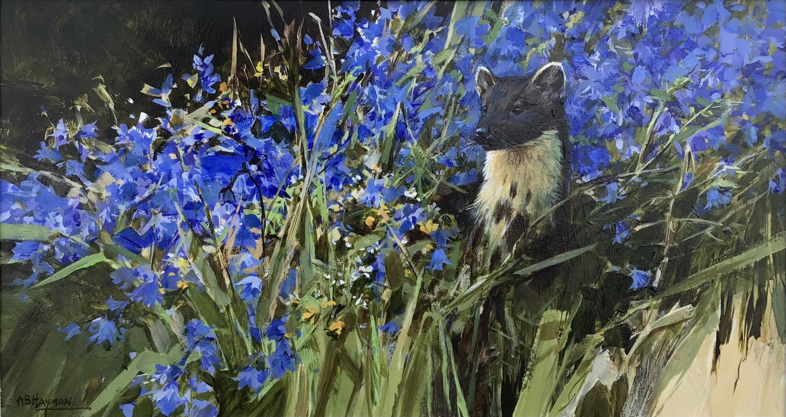 Pine Marten and bluebells.